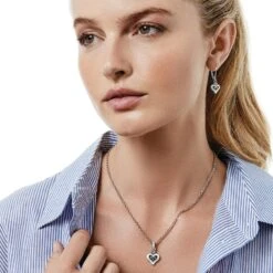 The stunning curves of the Alcazar Palace of Seville, Spain inspired this romantic heart necklace with white hand-enameled details.