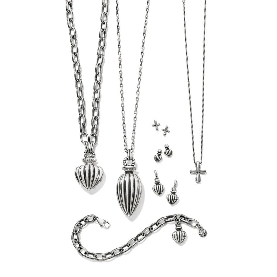 These earrings are inspired by architectural details of 12th century European cathedrals and the shapely details of pottery vessels.