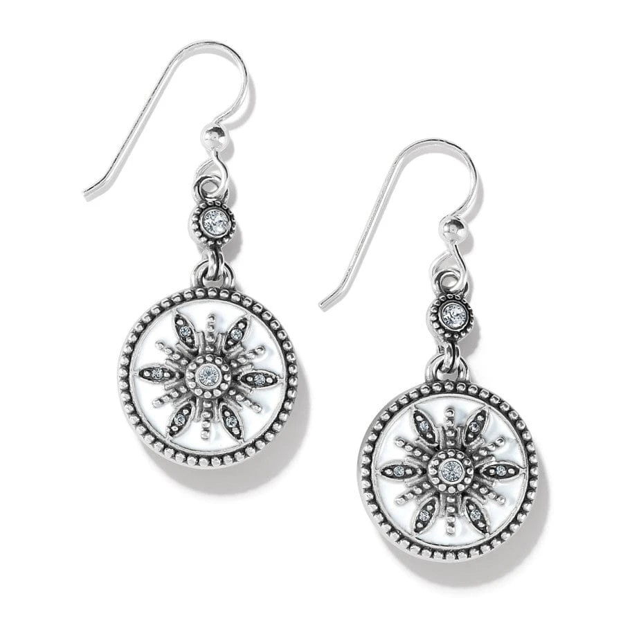 Tiny snowflakes sparkle against a hand-enameled background on these silver french wire earrings Great to wear all winter long!