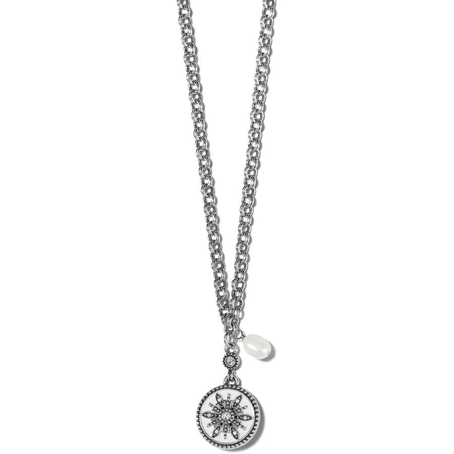 A tiny snowflake sparkles against a hand-enameled background, with a delicate natural pearl charm to accent the look. A great necklace to wear all winter long!