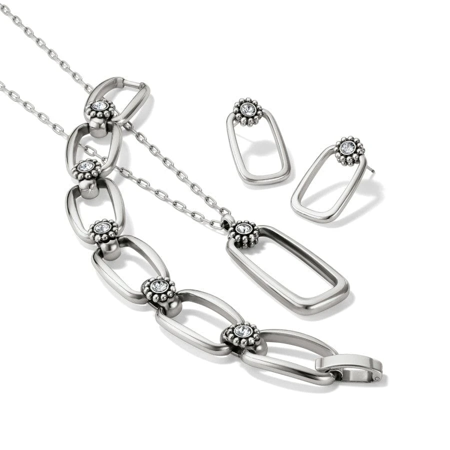 Bold modern links are connected by diamond-like medallions on this sparkling silver bracelet.